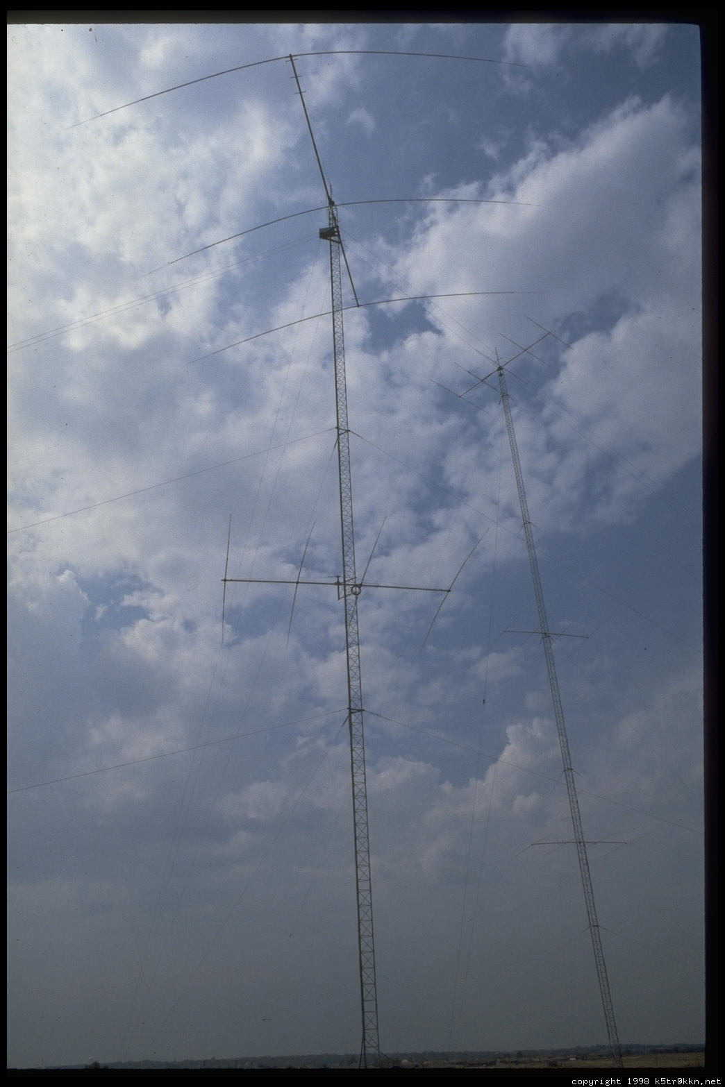 Other 80 meter antennas were a diople at 180 feet broadside east/west, A diople at about 130 feet broadside norhteast/southwest, A dipole at 140 feet broadside north/south and a bobtail curtian broadside northwest/southeast.