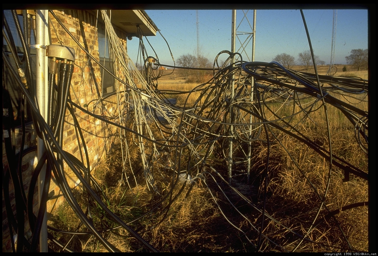 Having all of these antennas means that you need alot of hardline and control/rotator cables. All of the antennas were feed with either 1/2 inch or 7/8 inch hardline. Some of the feeline runs were in the 400 to 600 foot range. Even though this looks like a real mess I got to the point that I knew what and where most of it was.