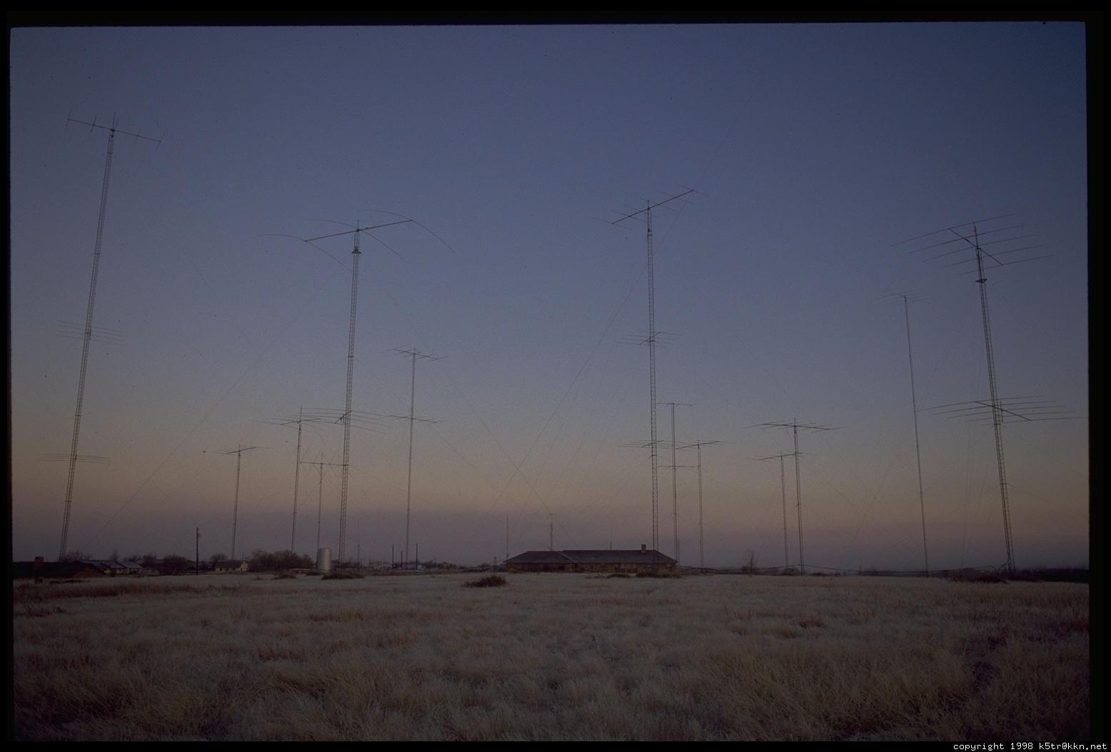 Welcome to the N5AU station tour. During the 1980's I was very fortunate to be allowed almost unlimited access to one of the biggest amateur radio stations in the world. I also got to operate with and learn from some great contest operators. This experience helped me become a better operator and taught me a vast amount about contest station design. N5AU is the callsign of Gordon Fogg. Gordon had always wanted to win the multi-multi category in the CQ World Wide SSB DX contest. In 1980 he set out to build a station that would be designed from the ground up with just this goal in mind. Over the years the antennas at N5AU changed and evolved in an effort to make the station louder and more flexible. The things that worked were kept - the things that did not work were changed. As I describe each band I will attempt to tell you some of the other antennas that had been up over the years on that band and what antennas worked or didn't work as the case may be. One thing worth pointing out is that the station was designed for M/M and certain things were done to that end - things that you would not need to do at a station designed for single op or multi-single. Sadly the station has been off the air since about 1993 - Gordon has had an incresing intrest in building a station in and operating from VP2EC. Over the years he has taken some of the hardware down to VP2EC - so when you hear him on the air from there with a big signal you will know why. I wanted to do this tour so that others could see one of the bigger stations ever built.